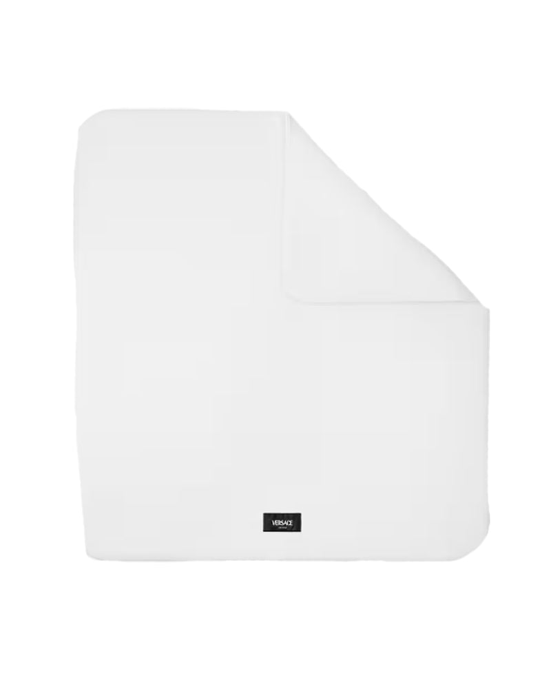 Introducing this Versace baby white cotton logo crest blanket - a thoughtfully designed padded blanket crafted from soft cotton jersey. The centrepiece features an elegant Laurel Crest graphic that adds a refined touch to nursery décor. The padded construction provides gentle warmth and comfort for your little one during rest time, tummy time, or as a decorative accent. Ideal for parents who appreciate quality materials and timeless design.