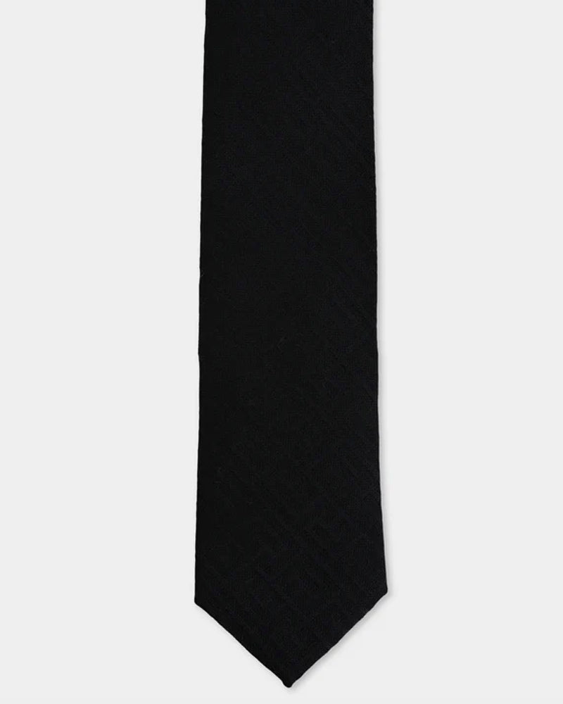 This boys' black skinny tie from Balmain features a soft virgin wool fabric for comfortable wear and showcases the brand’s signature monogram 'B' detailing. Its sleek design adds a refined touch to any formal outfit, combining luxury with subtle style for young fashion enthusiasts.