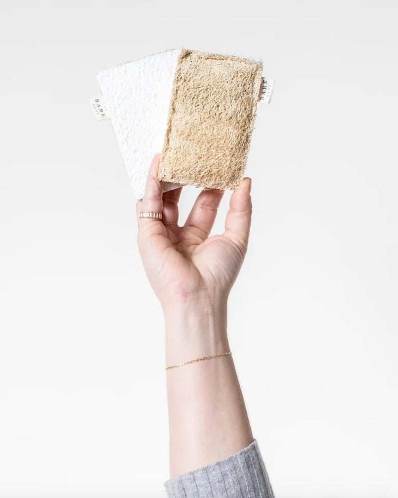 This dual-action sponge is perfect for soaking up spills or scrubbing hard-to-clean surfaces! Unlike conventional kitchen sponges that contain plastics, glues + adhesives, this plastic-free all-natural alternative uses plant-based power to tackle your toughest messes!