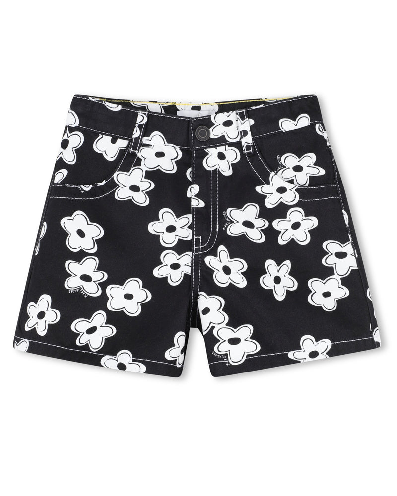 Girls Black Daisy Shorts by Marc Jacobs blend timeless style with everyday practicality. Crafted from durable black cotton drill, these shorts feature an all-over white daisy print that adds visual interest to any wardrobe. Functional front and back pockets provide convenient storage, while contrast stitching enhances the design details. The adjustable waist ensures a secure, comfortable fit as your child grows. Finished with the iconic Marc Jacobs silicone label on the back for authentic branding.