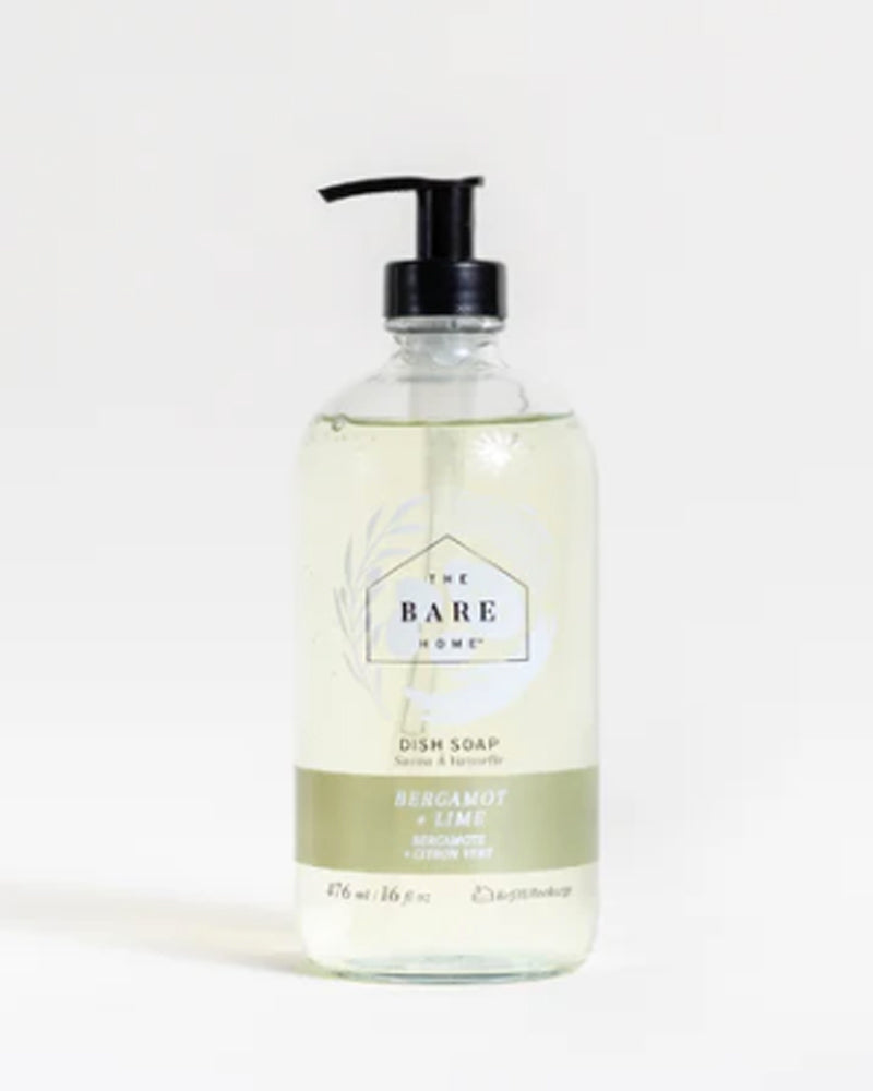 Rich suds and nourished hands. This powerhouse Dish Soap will cut through grease and stuck-on foods. The Bare Home vitamin E-enriched formula will leave your hands feeling nourished and never dry. Elevate your dishwashing experience. Scented with organic essential oils of Bergamot + Lime. Enjoy the refreshing and crisp citrus of Lime perfectly blended with the herbaceous notes of Bergamot.